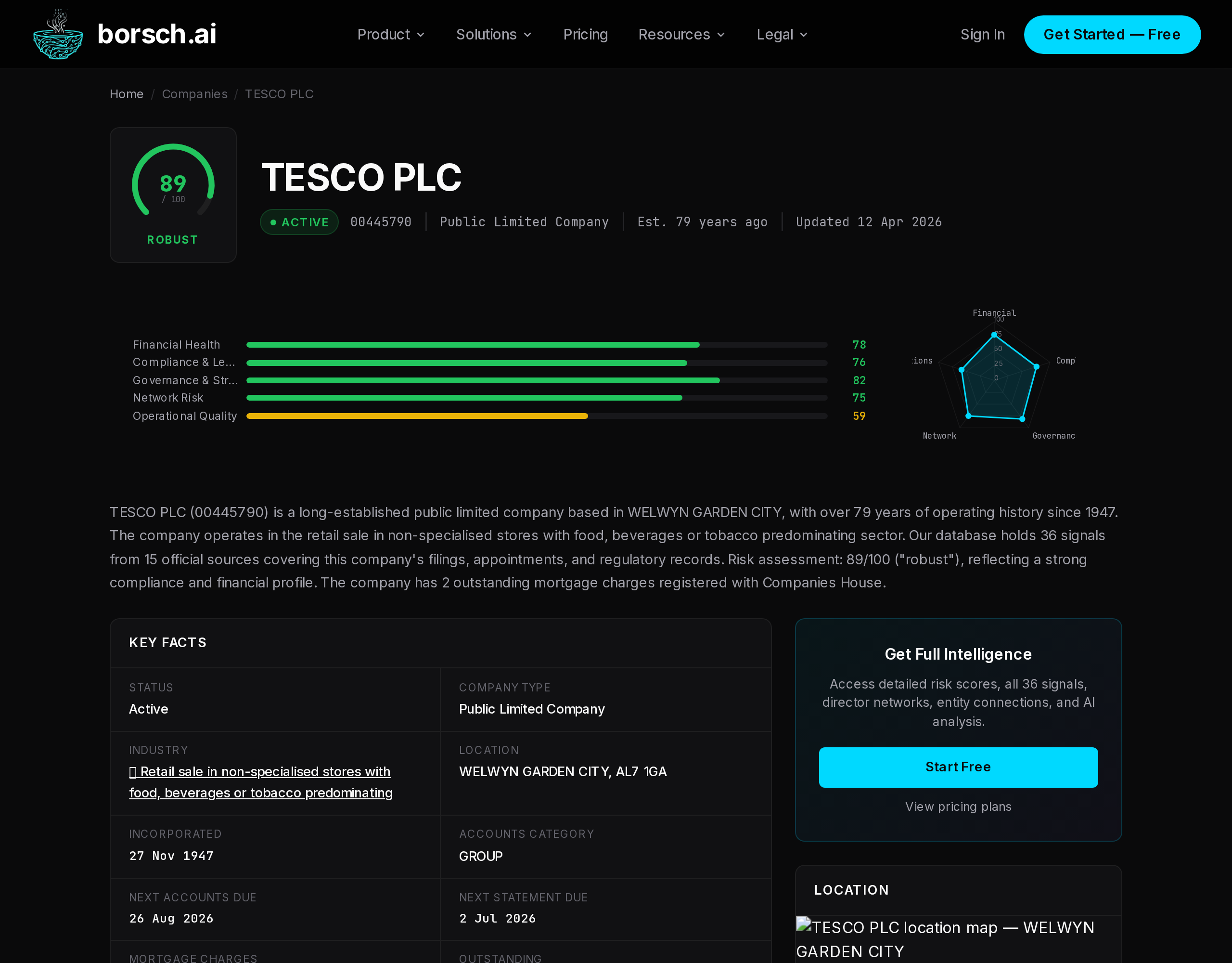 A comprehensive, single-page view of any UK company — combining official filings, risk analysis, regulatory data, and AI-powered insights into one place.